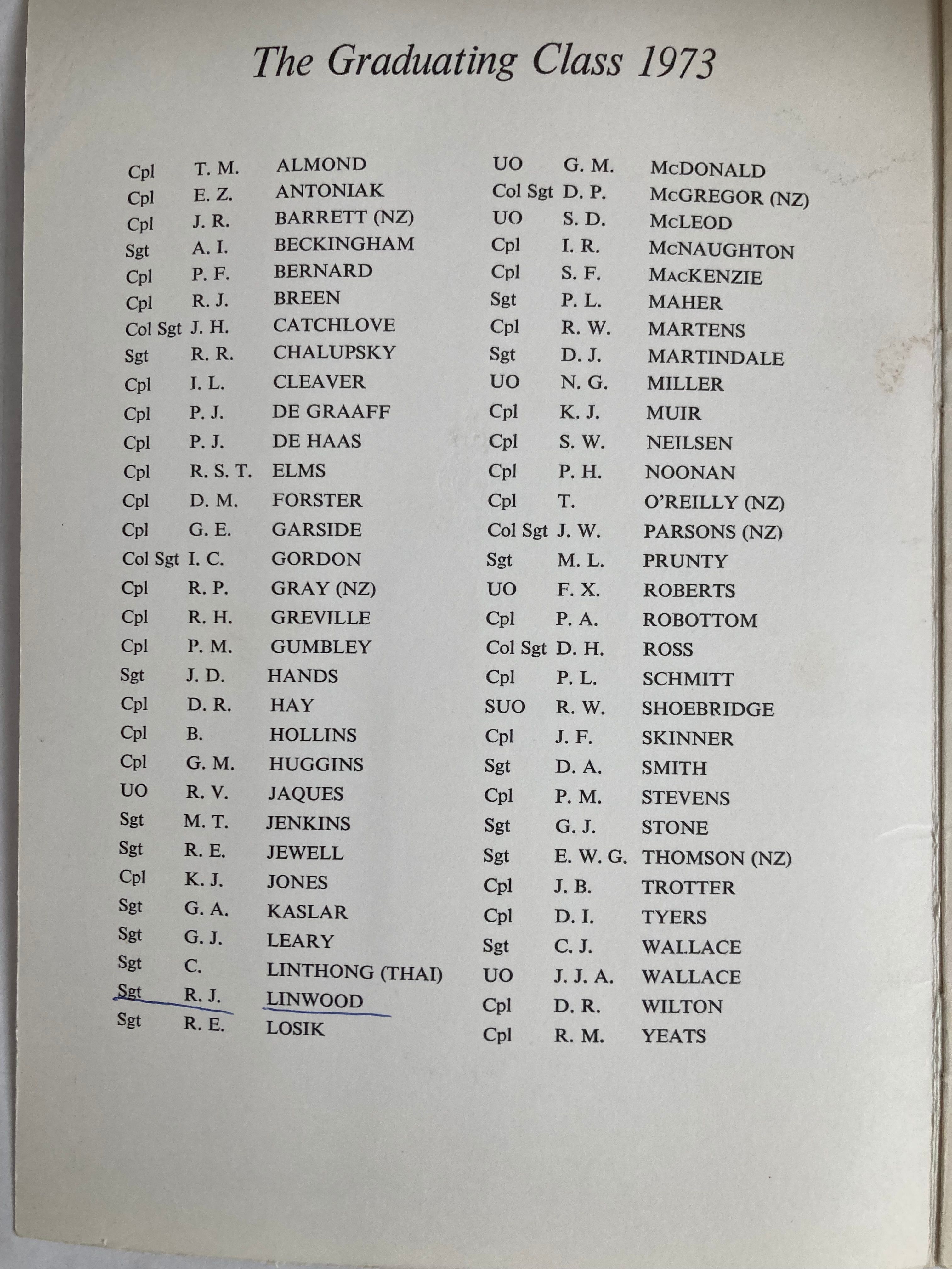 | Corps Aloc/Postings ’73 | ||