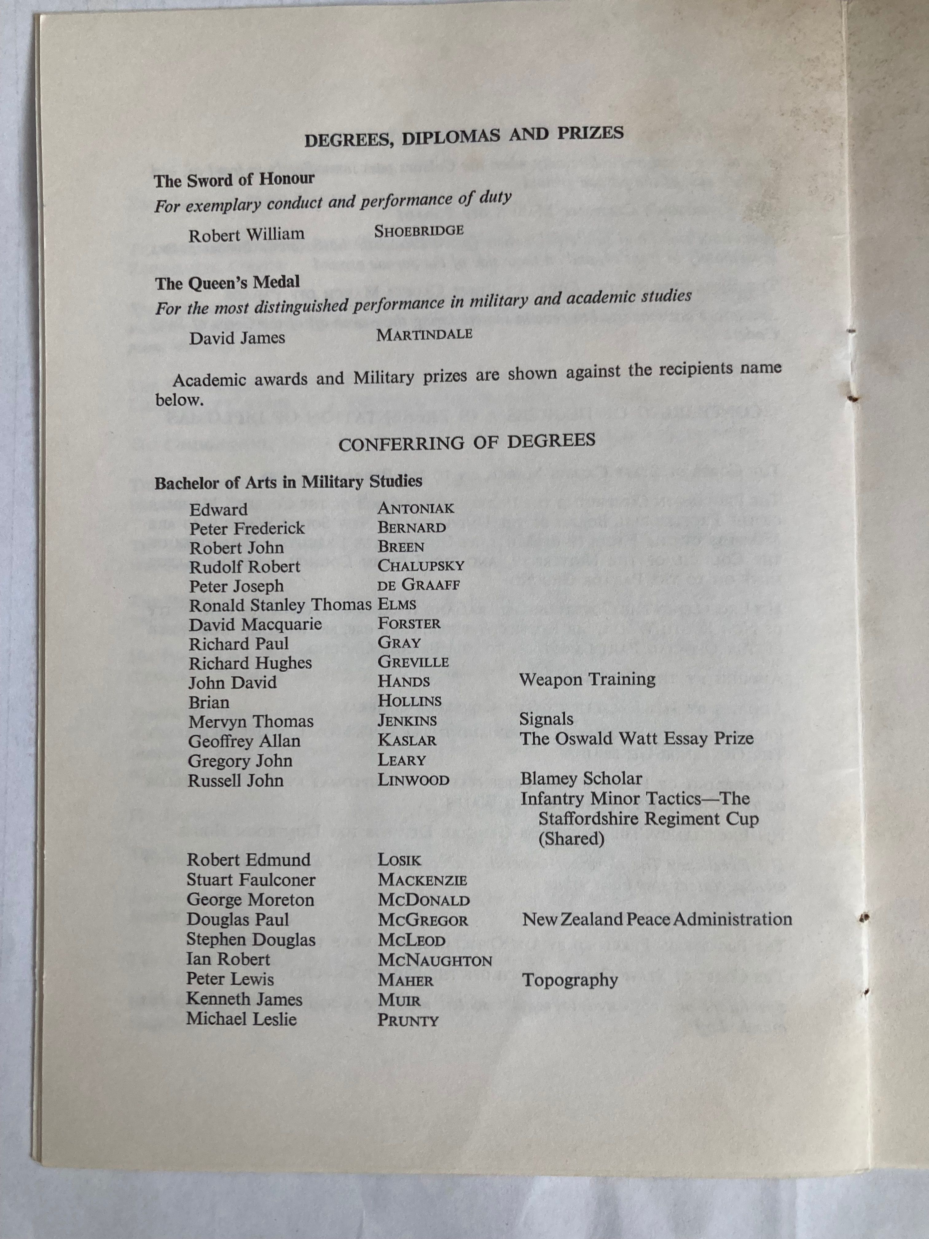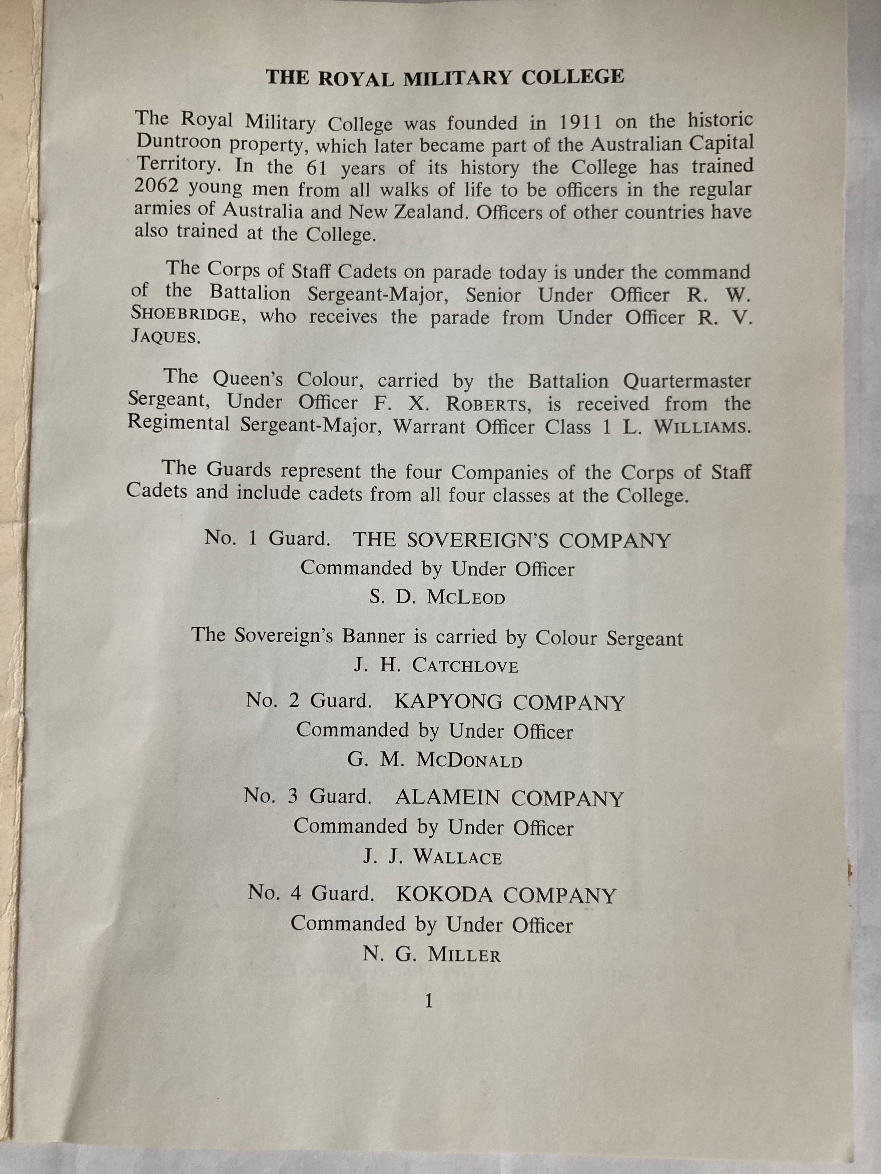 This page is Under Construction. It will include links to a range of Documents pertinent to our years at Duntroon. It will also contain images of Memorabillia which should bring back some memories. If you have any additional items that you would like to be considered for inclusion here, then please forward them via email to the COST Cat Herder-in-Chief.