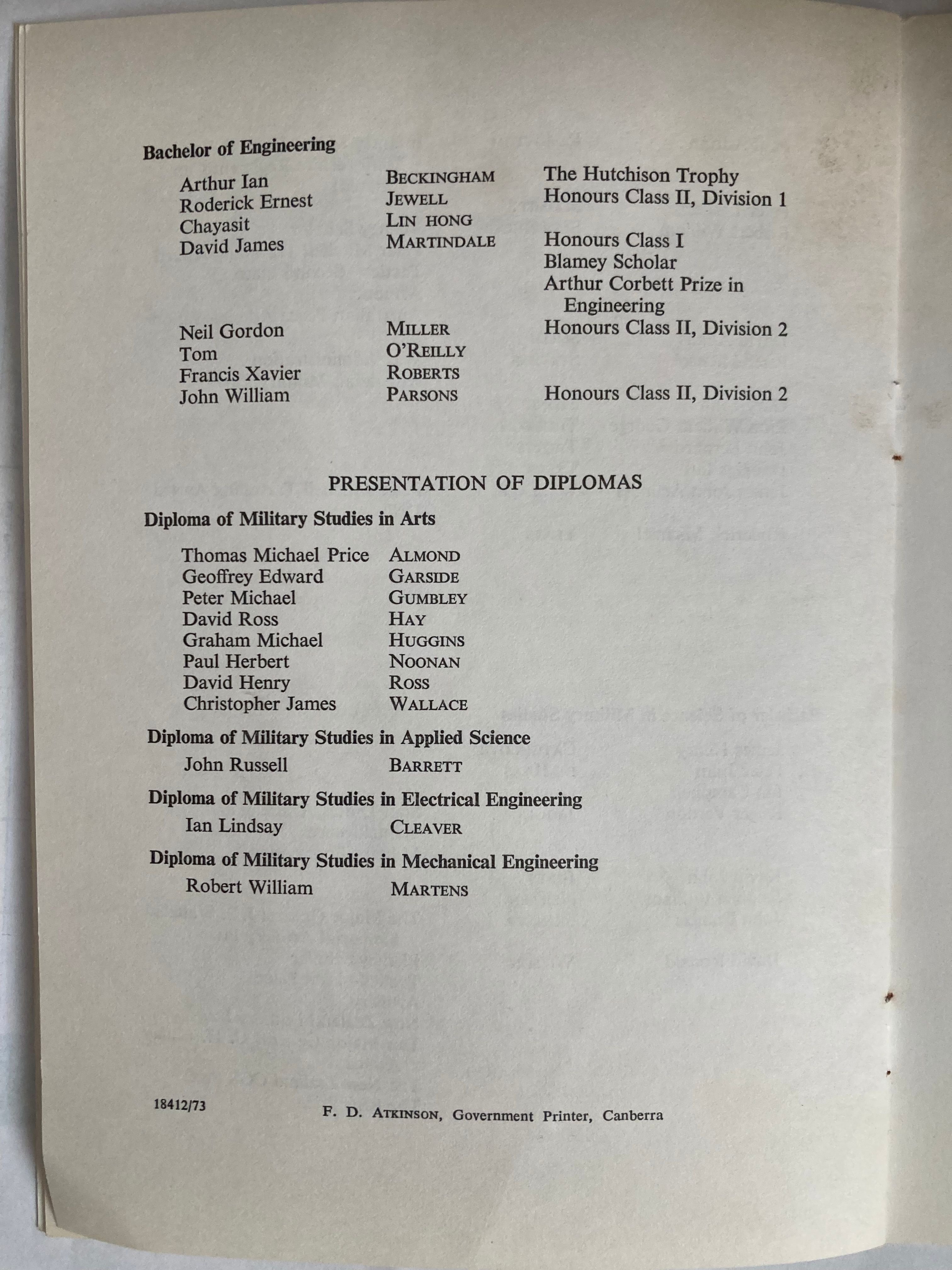 RMC Journal 1973. (Yet to be scanned as a PDF)